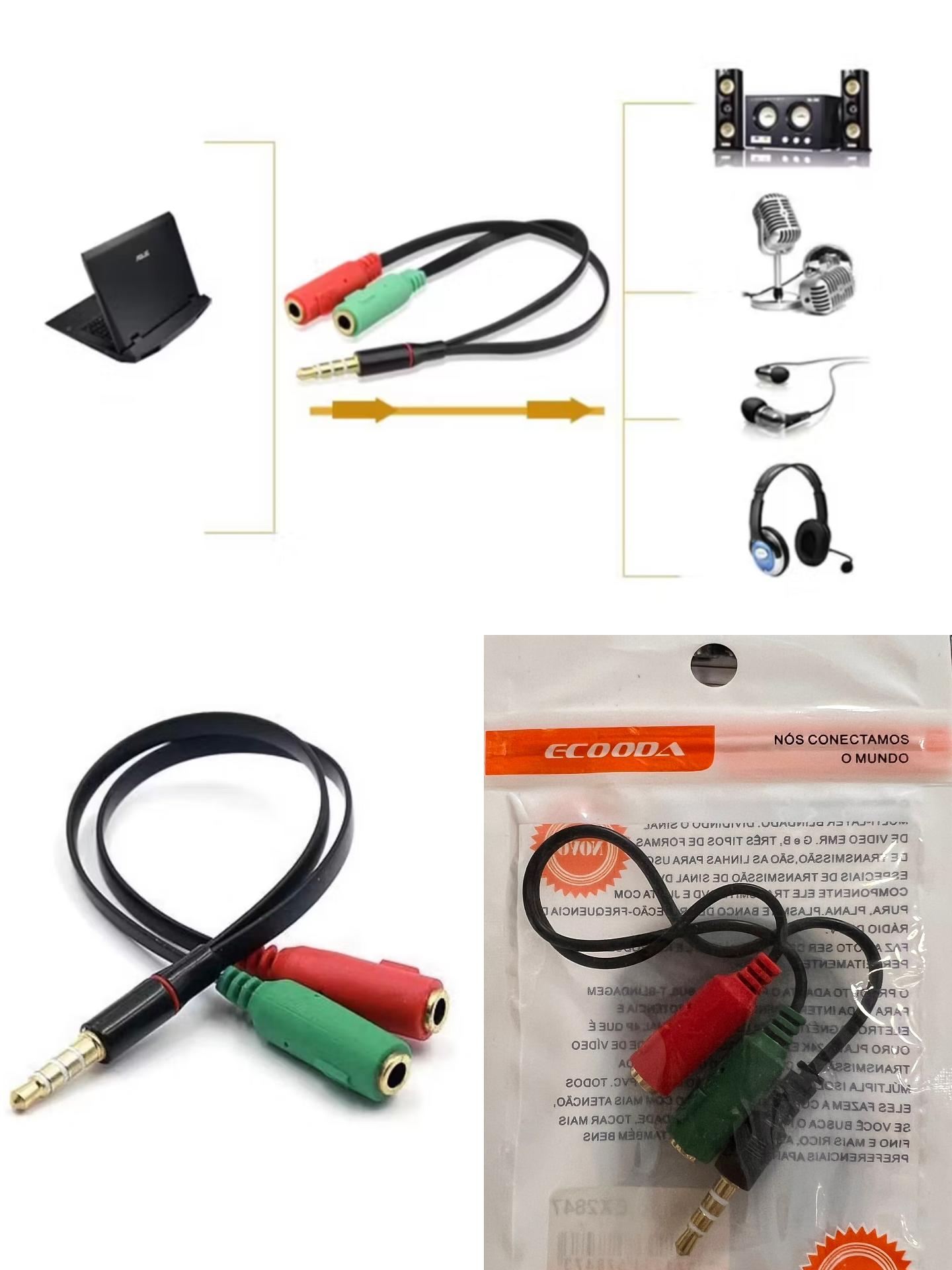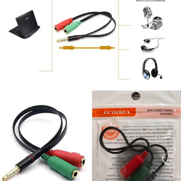 CABO ADAPTADOR Y ( P2 ) PARA FONE DE OUVIDO ( 2| P2-FEMEA ) PARA ( 1| P2-MACHO ). ( ECOODA )