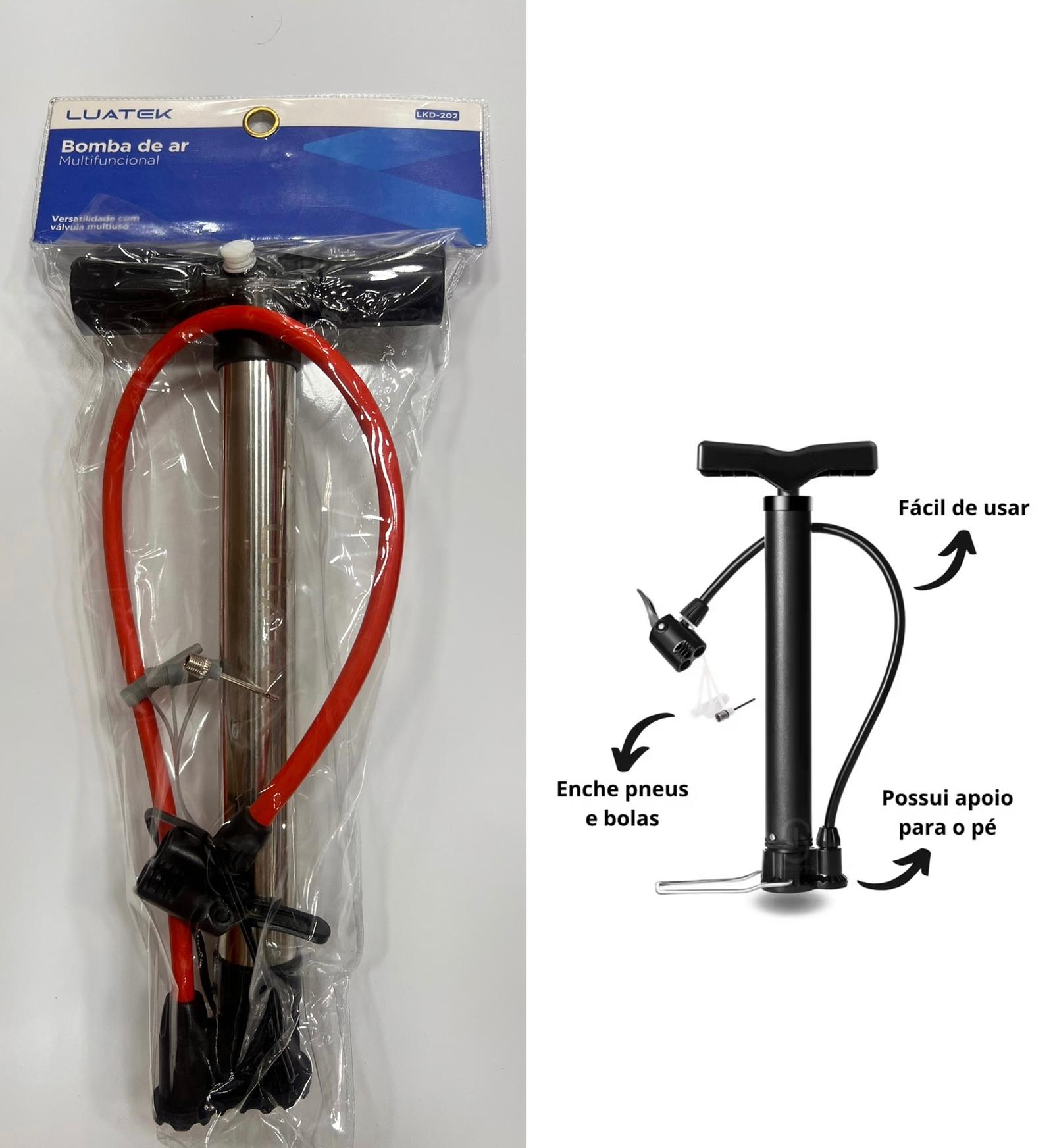 BOMBA DE AR, PARA ENCHER PNEU DE BICICLETA, BOLA, MOTO E ETC. ( LUA TEK )