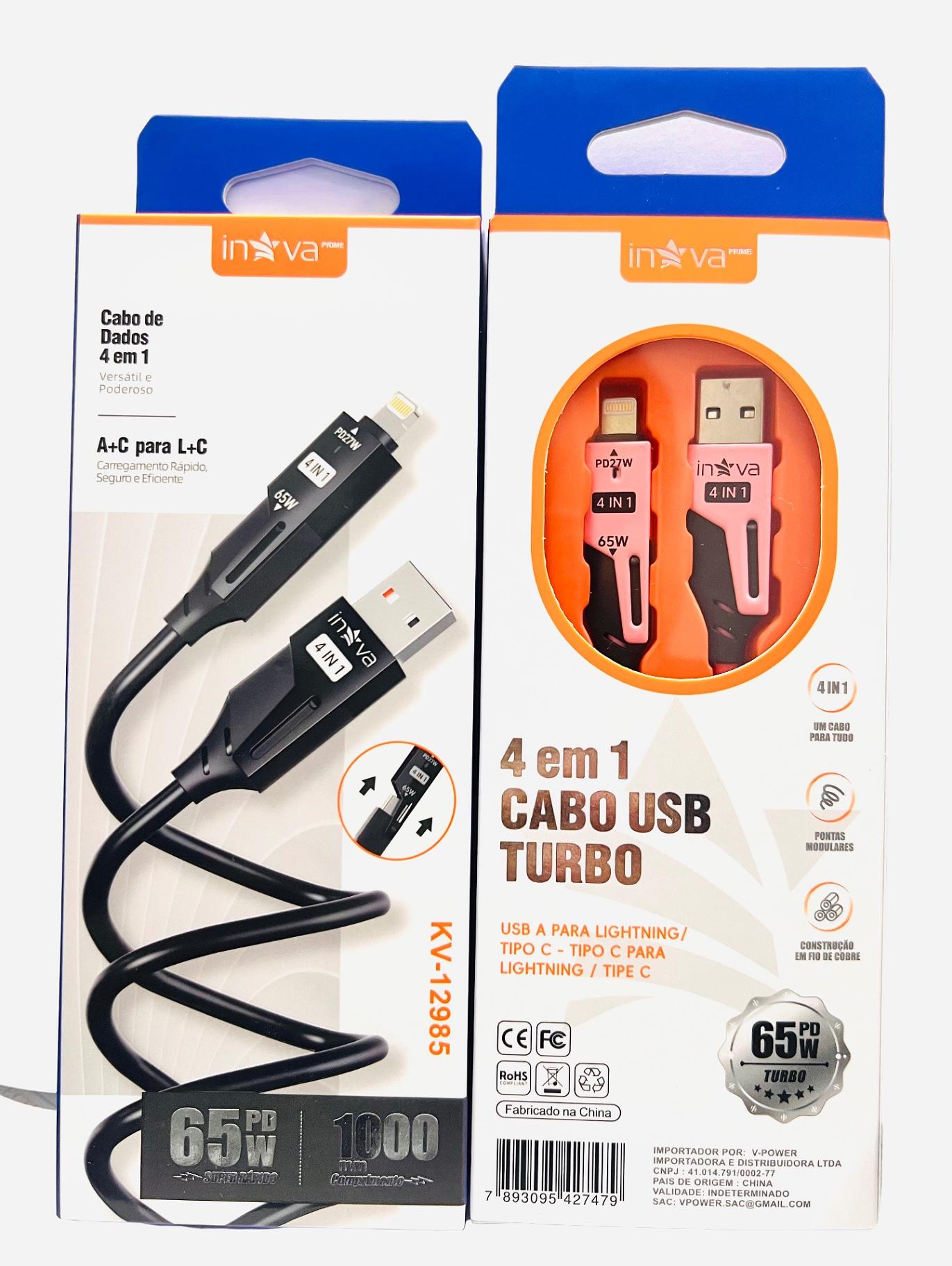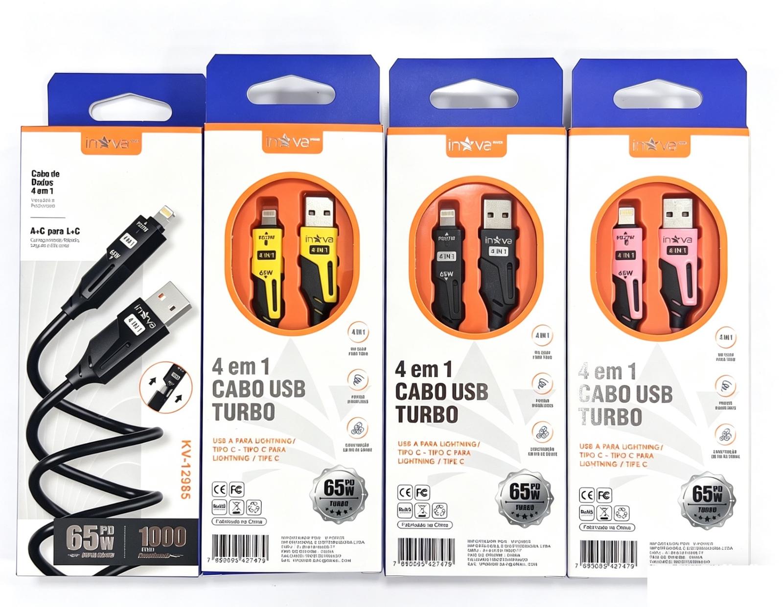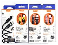 Cabo de dados de carregamento rápido 4 em 1 A+C Para L+C carregamento rápido 27W 65W adequado para iPhone Samsung Xiaomi