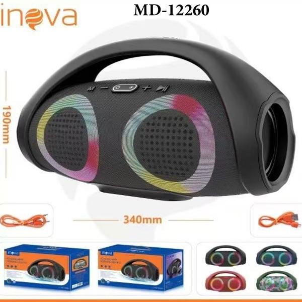 CAIXA DE SOM ( 10WX2 ), PORTÁTIL GRANDE, RECARREGÁVEL, LED ( RGB ) ( RÁDIO FM, TF CARD, AUX, BT ). ( INOVA )