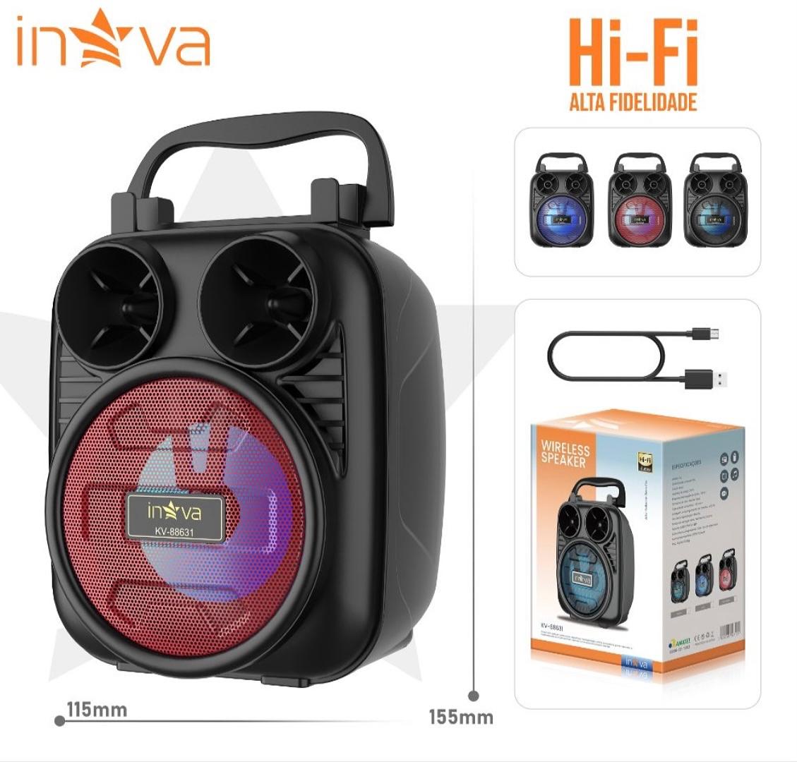 CAIXA DE SOM BLUETOOTH, COM LED, PEQUENA.