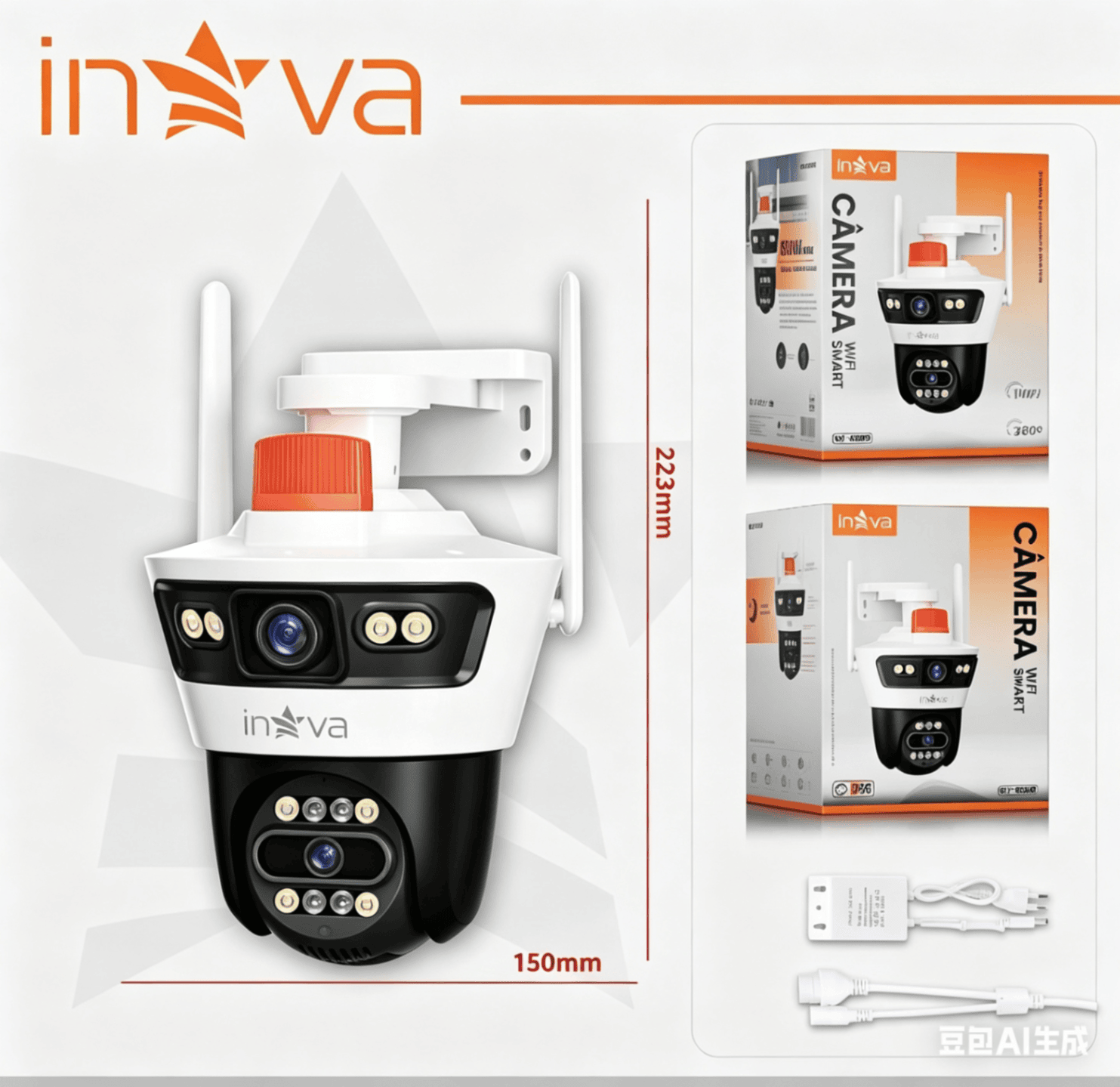 Câmera de Segurança Externa IP66 Visão Noturna Colorida, Zoom Digital, Áudio Bidirecional(INOVA)