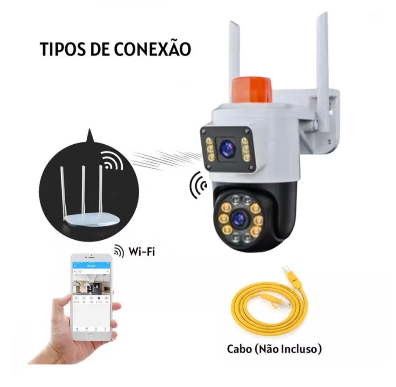 Camera De Seguranca Lente Dupla Com Alarme IP66 Prova D'agua 360° Sensor De Movimento (INOVA)