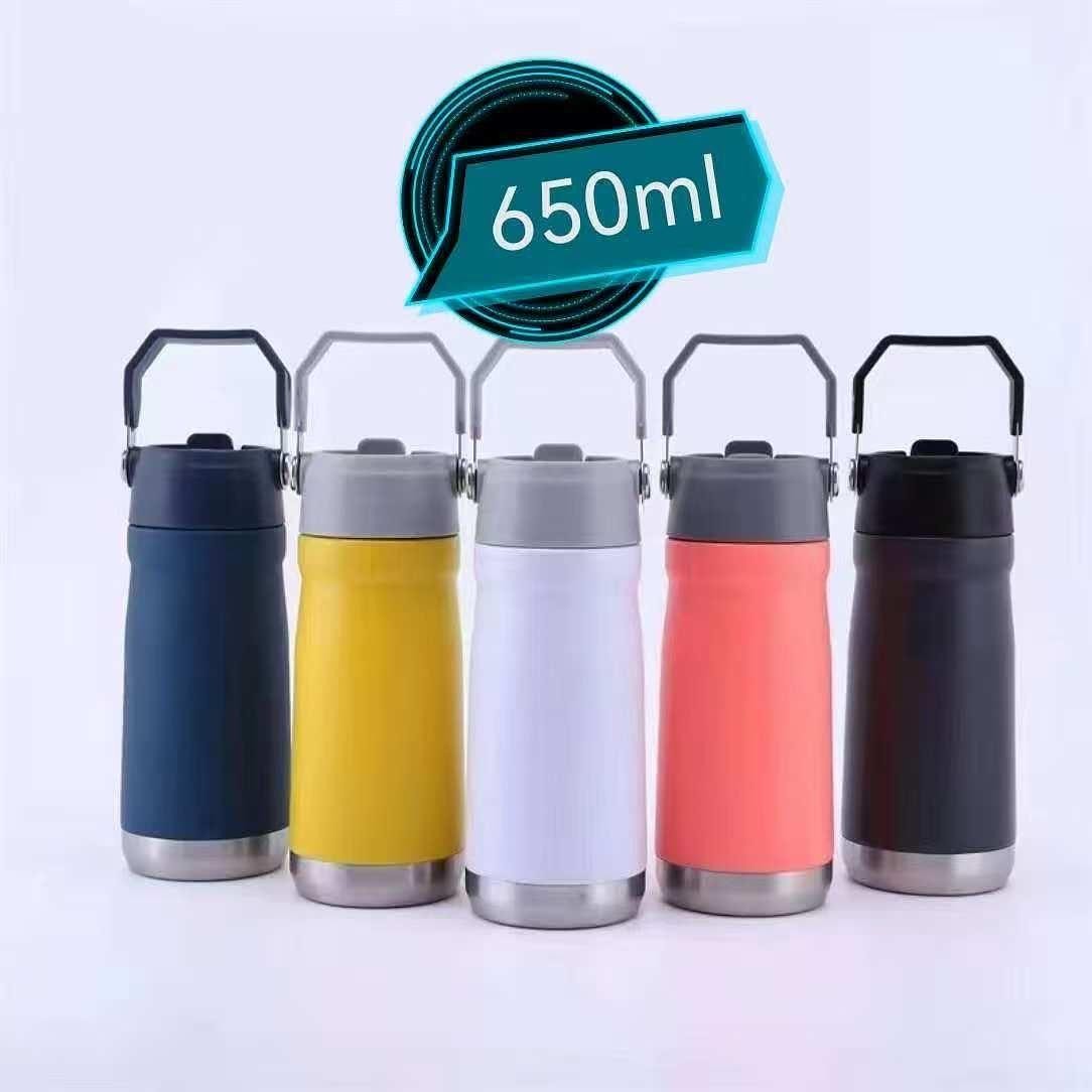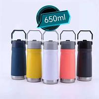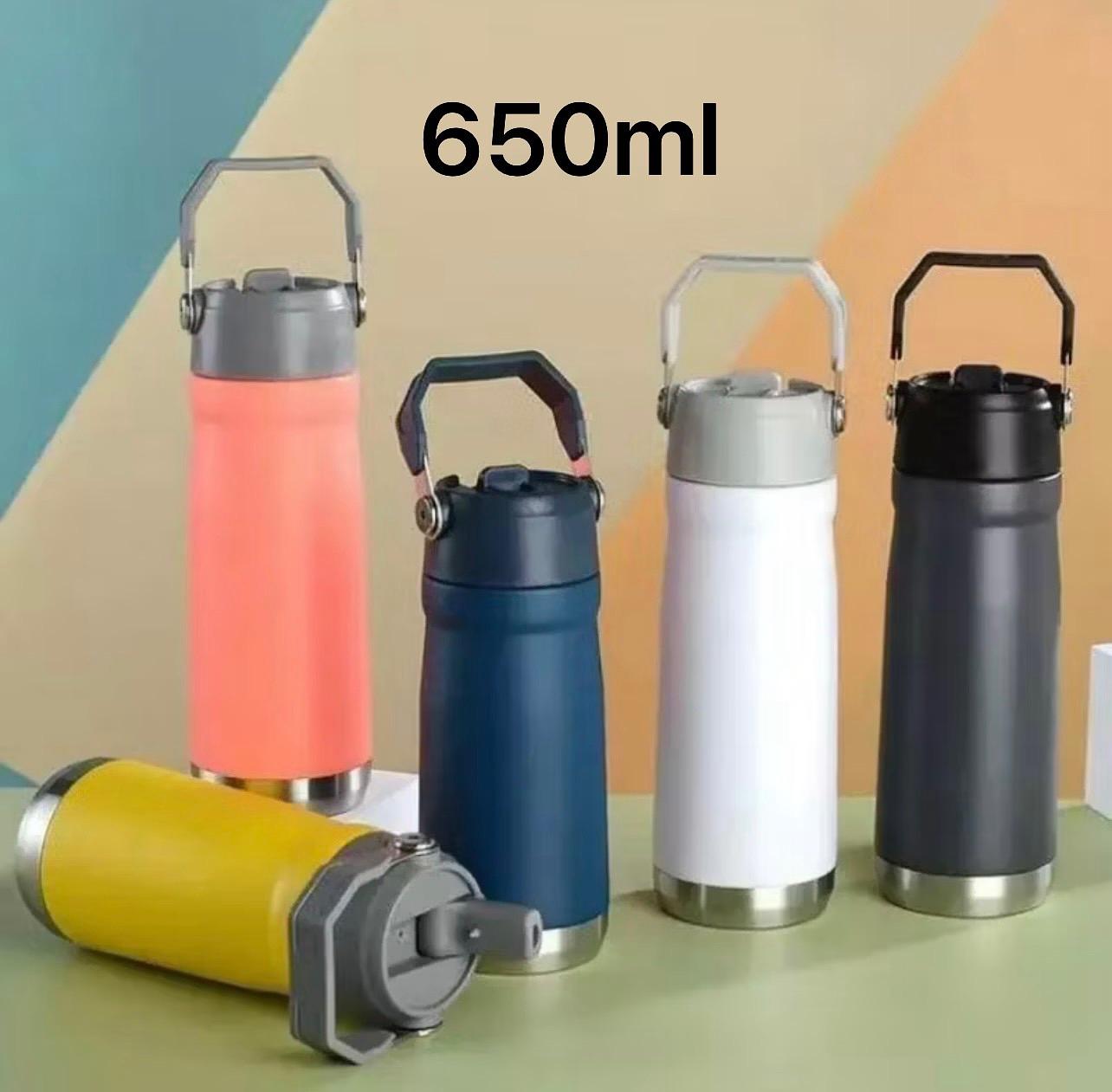 Garrafa Termica Aco inox 650/ml Parede Dupla Com Canudo Flip