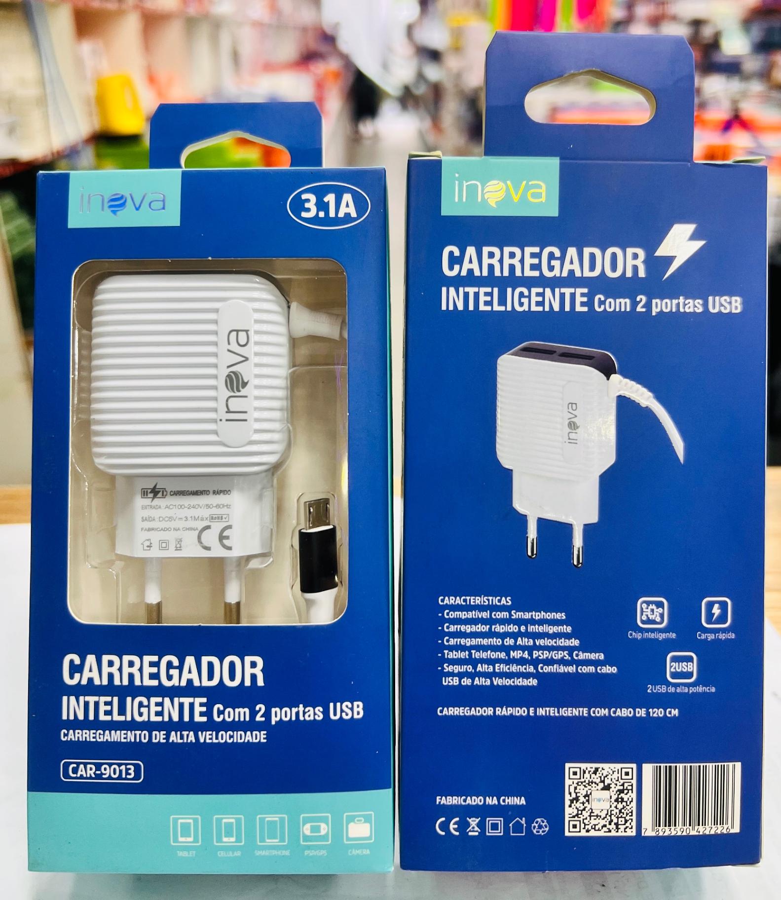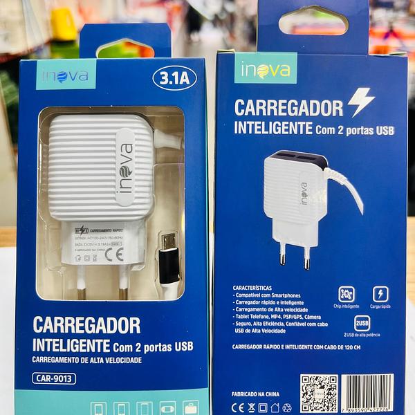 CARREGADOR ( 3.1A ) PARA ANDROID ( V8 ), COM CABO PRESO NA FONTE. ( INOVA )