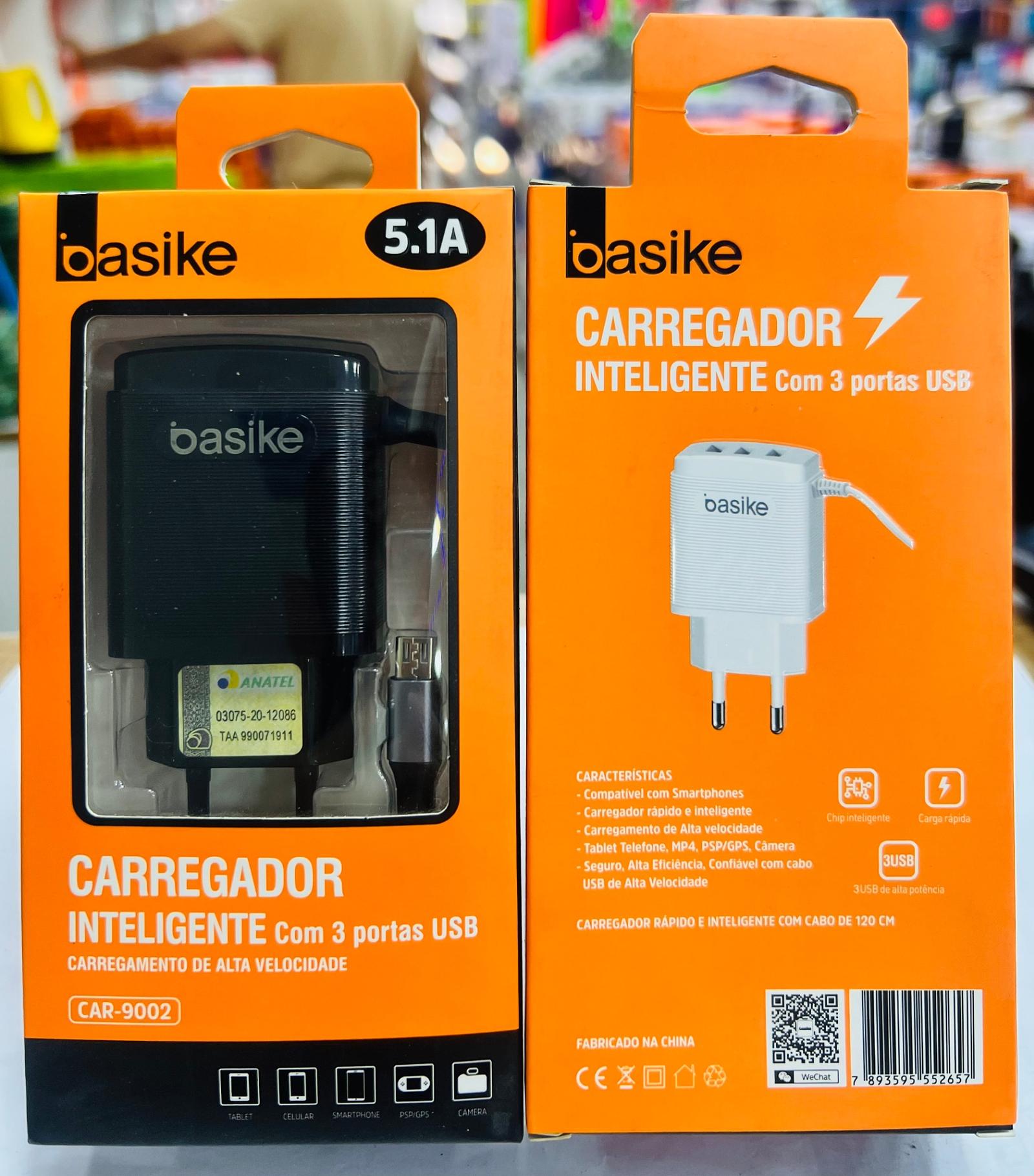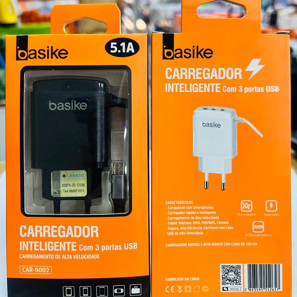 CARREGADOR ( 5.1A ) PARA ANDROID ( V8 ), COM CABO PRESO NA FONTE. ( BASIKE )