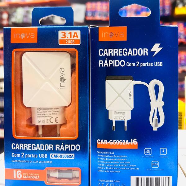 CARREGADOR ( 3.1A ) PARA IPHONE ( I6 ), CABO PRESO NA FONTE .