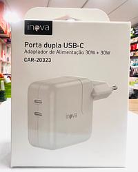 CARREGADOR TURBO ( 30W + 30W ), PARA ANDROID, E IPHONE ( TPC ), COM ( 2 USB-C ). ( INOVA )