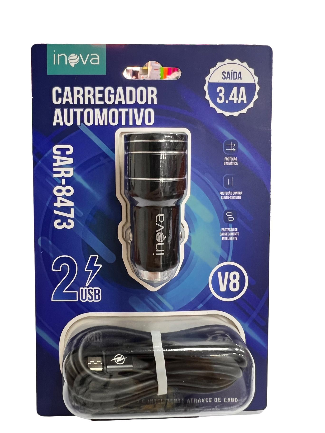 CARREGADOR VEICULAR ( 3.4A ), PARA ANDROID ( V8 ). ( INOVA )