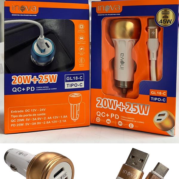 CARREGADOR TURBO ( 25W + 20W ) PARA ANDROID ( TC ), ( USB ) E ( USB-C ). ( INOVA )