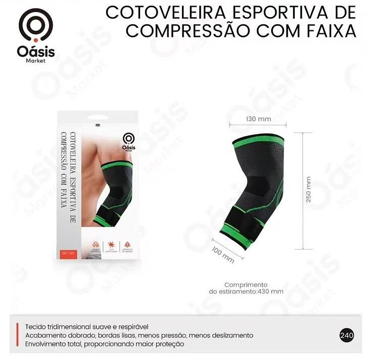 COTOVELEIRA ESPORTIVA DE COMPRESSÃO COM FAIXA. ( Oásis )