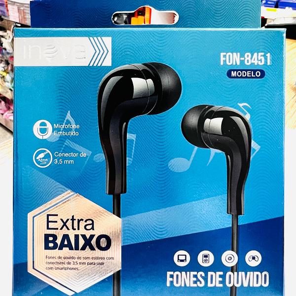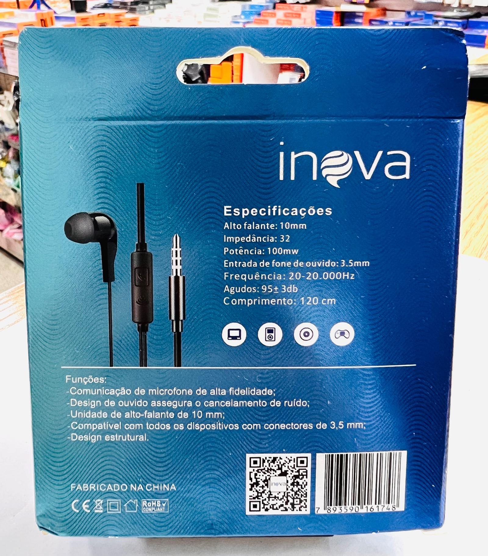 FONE DE OUVIDO COM FIO E BORRACHINHA ( P2 ). ( INOVA )