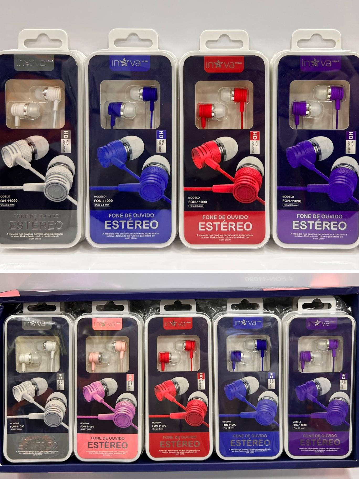 FONE DE OUVIDO COM FIO, COM BORRACHINHA ( P2 ), COLORIDO. ( INOVA )