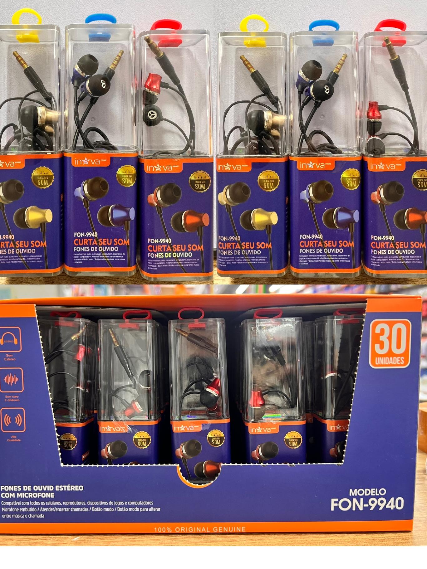 FONE DE OUVIDO COM FIO, COM BORRACHINHA ( P2 ), COLORIDO. ( INOVA )