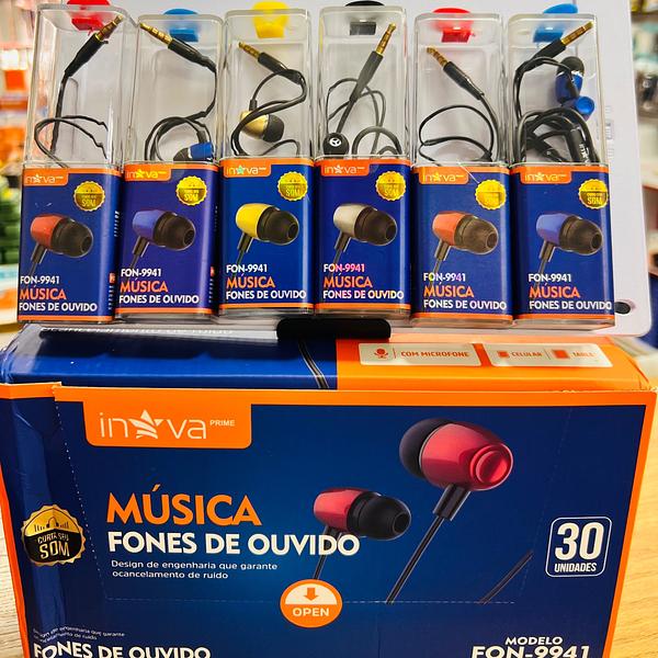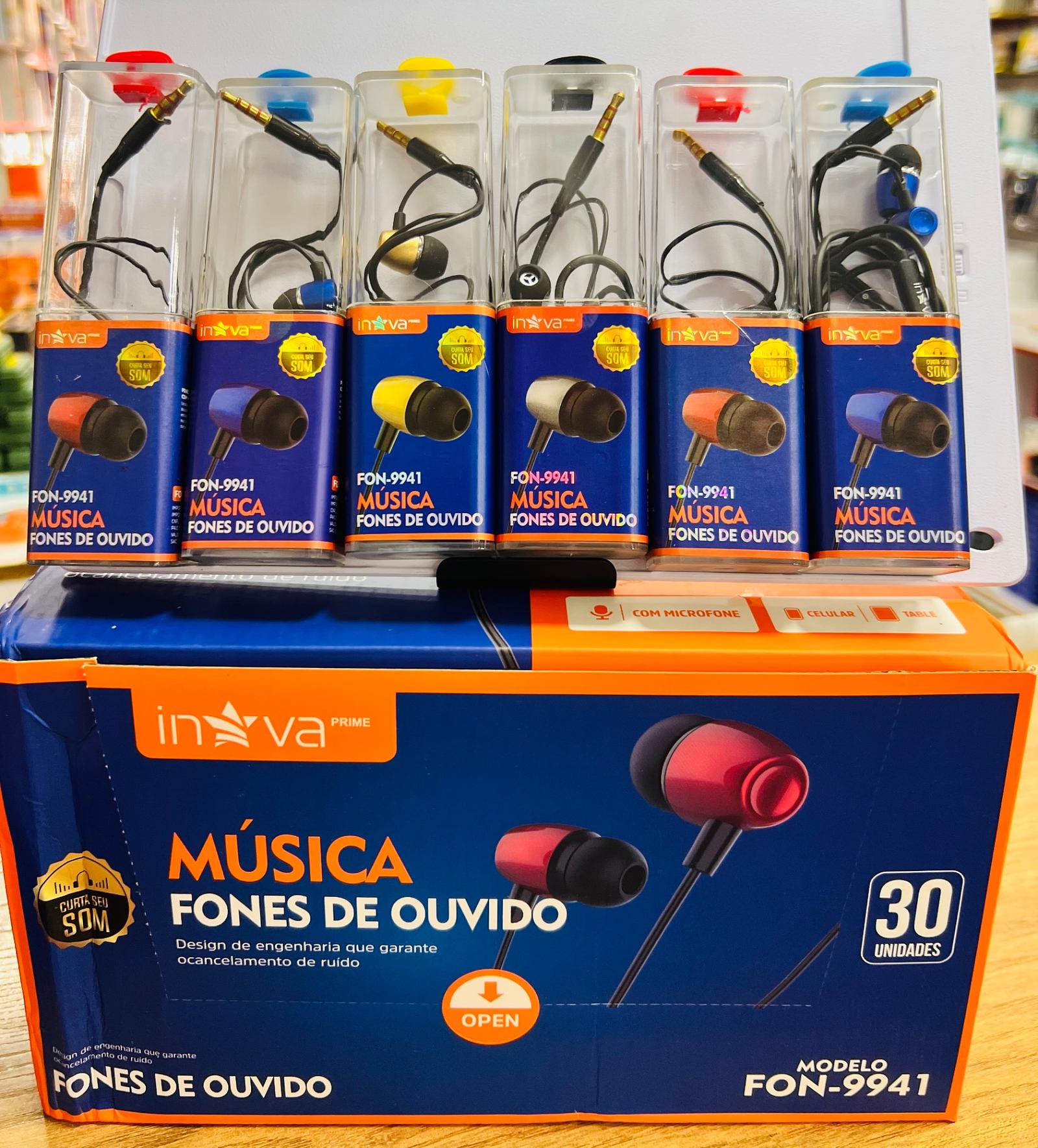 FONE DE OUVIDO COM FIO, COM BORRACHINHA ( P2 ), COLORIDO. ( INOVA )