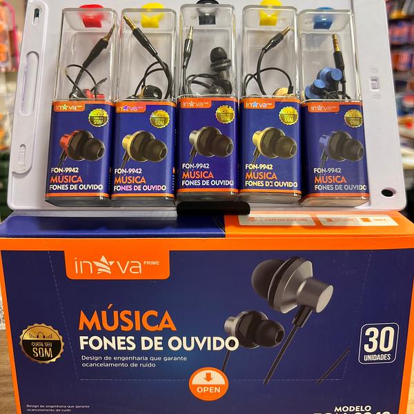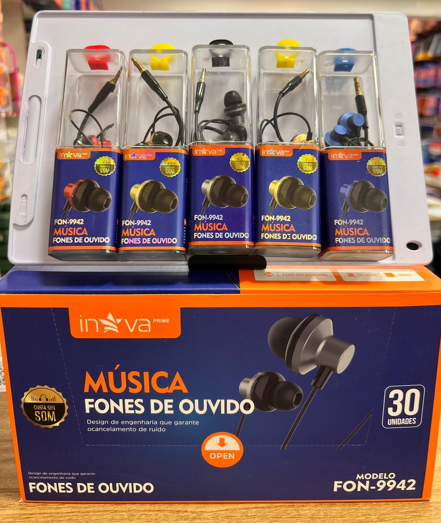 FONE DE OUVIDO COM FIO, COM BORRACHINHA ( P2 ), COLORIDO. ( INOVA )