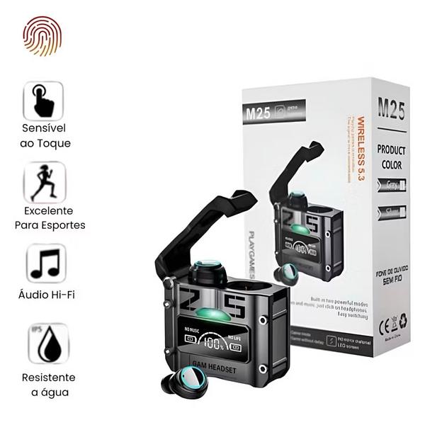 FONE DE OUVIDO SEM FIO ( BT ) COM CARRREGADOR . ( M25 )