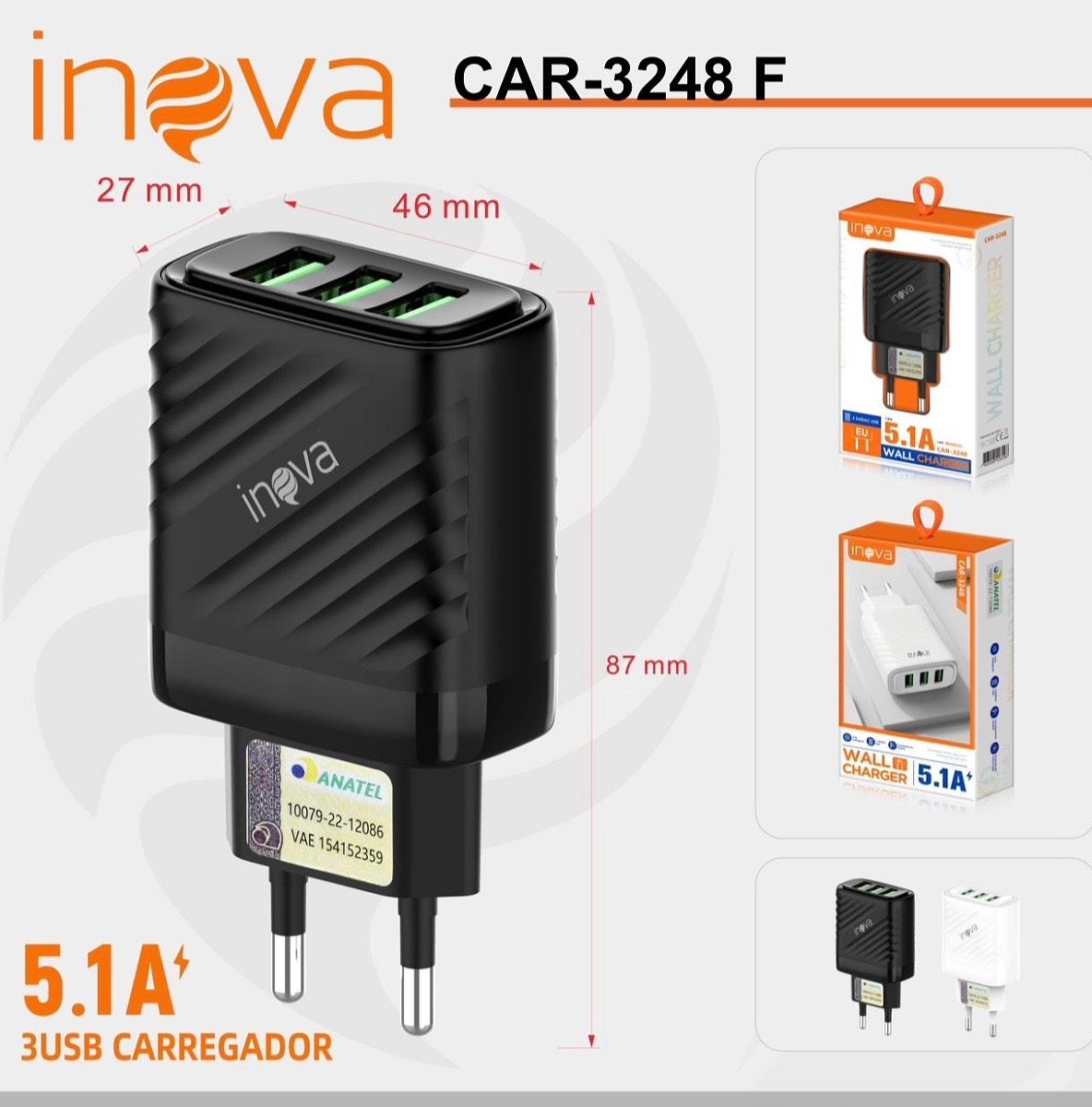 FONTE DE CARREGADOR ( 5.1A ), COM ( 3 USB ). (INOVA )