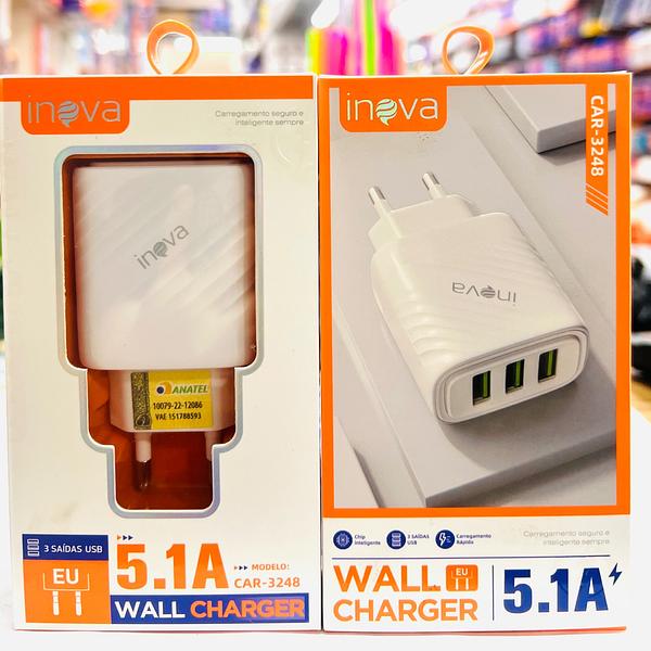 FONTE DE CARREGADOR ( 5.1A ) COM TRÊS USB.