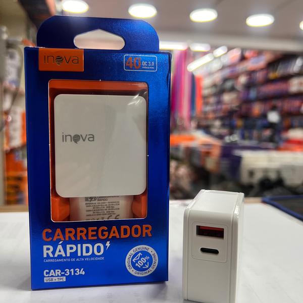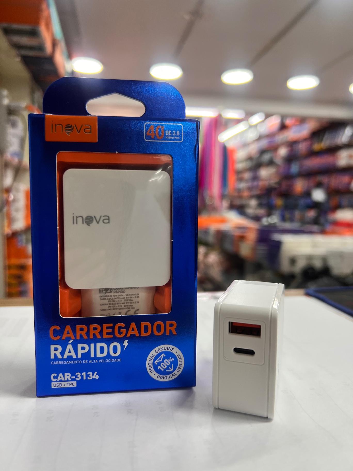 FONTE TURBO ( 40W ) DE CARREGADOR, COM ENTRADAS ( USB | USB-C ). ( INOVA )