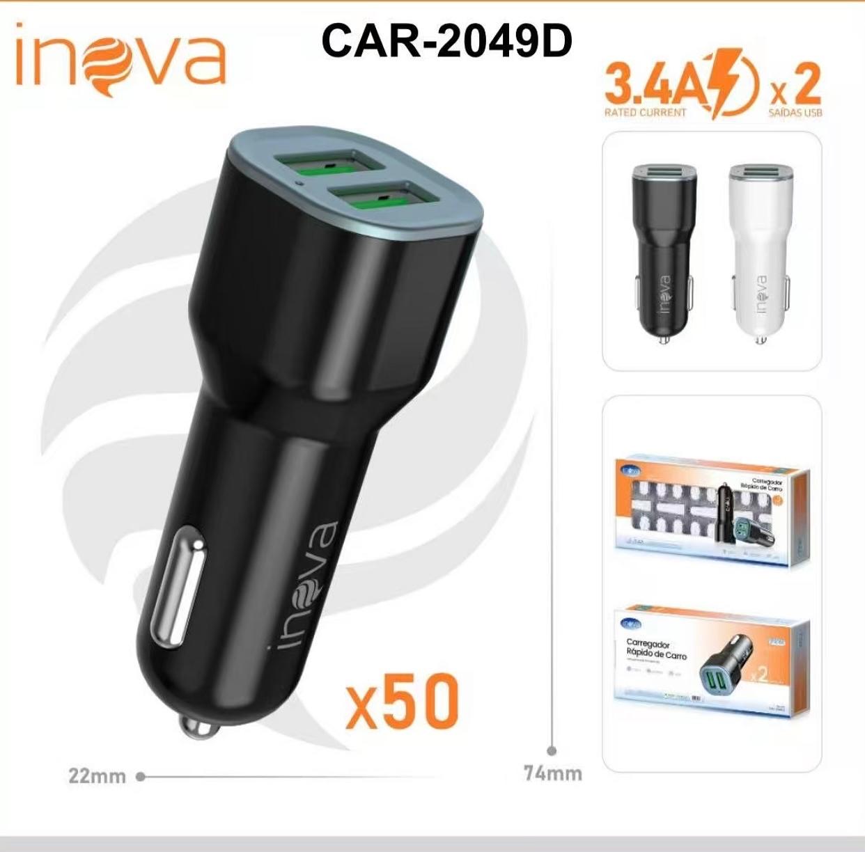 FONTE DE CARREGADOR ( 3.4A ) USB, VEÍCULAR. ( INOVA )