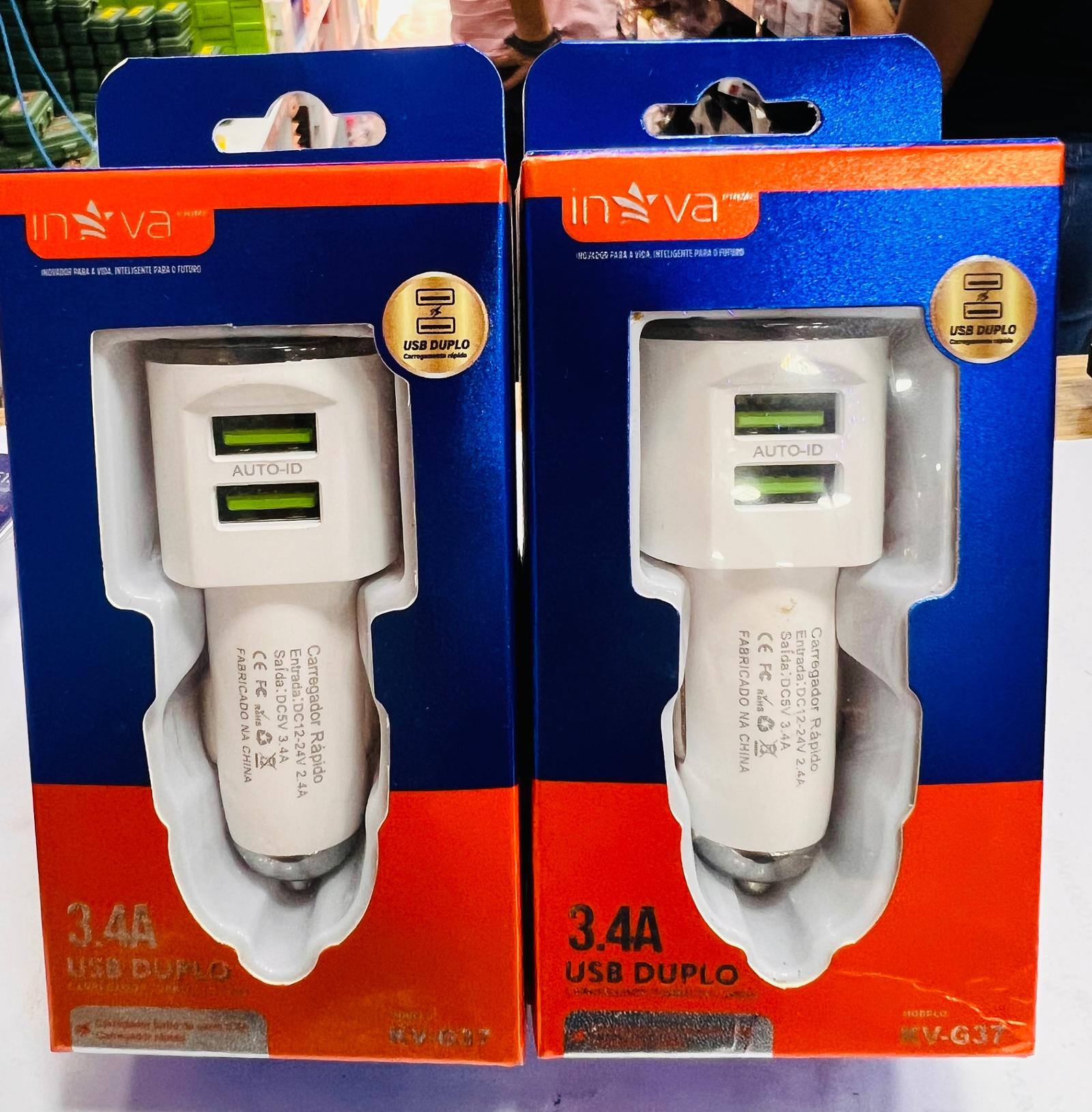 FONTE DE CARREGADOR ( 3.4A | 2USB ), VEÍCULAR. ( INOVA )
