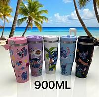 Garrafa Stitch Termica Inox 900ML Com Canodo e Tampa
