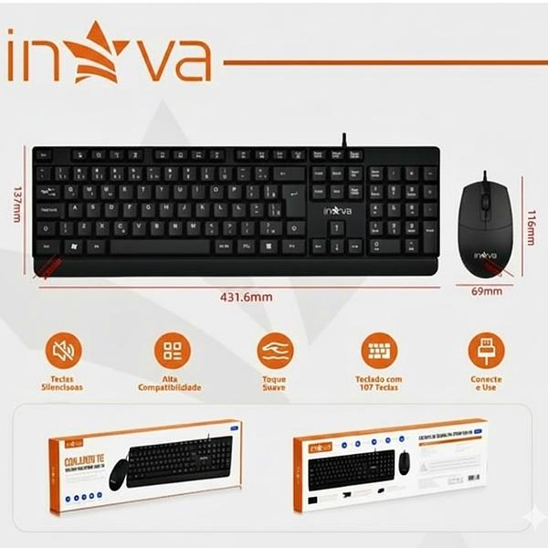 KIT DE TECLADO E MOUSE COM FIO. ( INOVA )