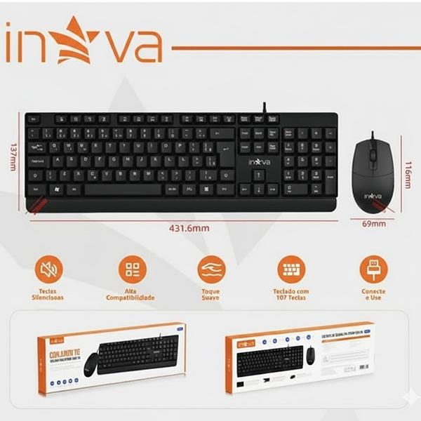 KIT DE TECLADO E MOUSE COM FIO. ( INOVA )