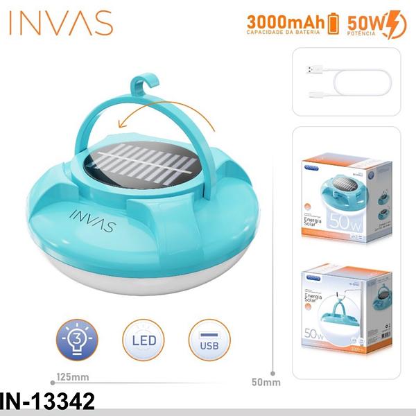 Lanterna Emergencia (50W/3000mAh) Recarregavel e Solar Ufo A Prova D'agua (INOVA)