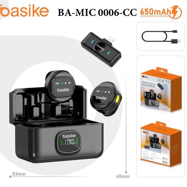 MICROFONE LAPELA COLARINHO SEM FIO DUPLO ( 2EM 1 ), PARA IPHONE ( IP ) COM REDUÇÃO DE RUIDO. ( BASIKE )