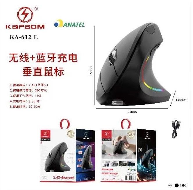 Mouse Vertical Com Carregamento Sen Fio e Bluetooth (KAPBOM)