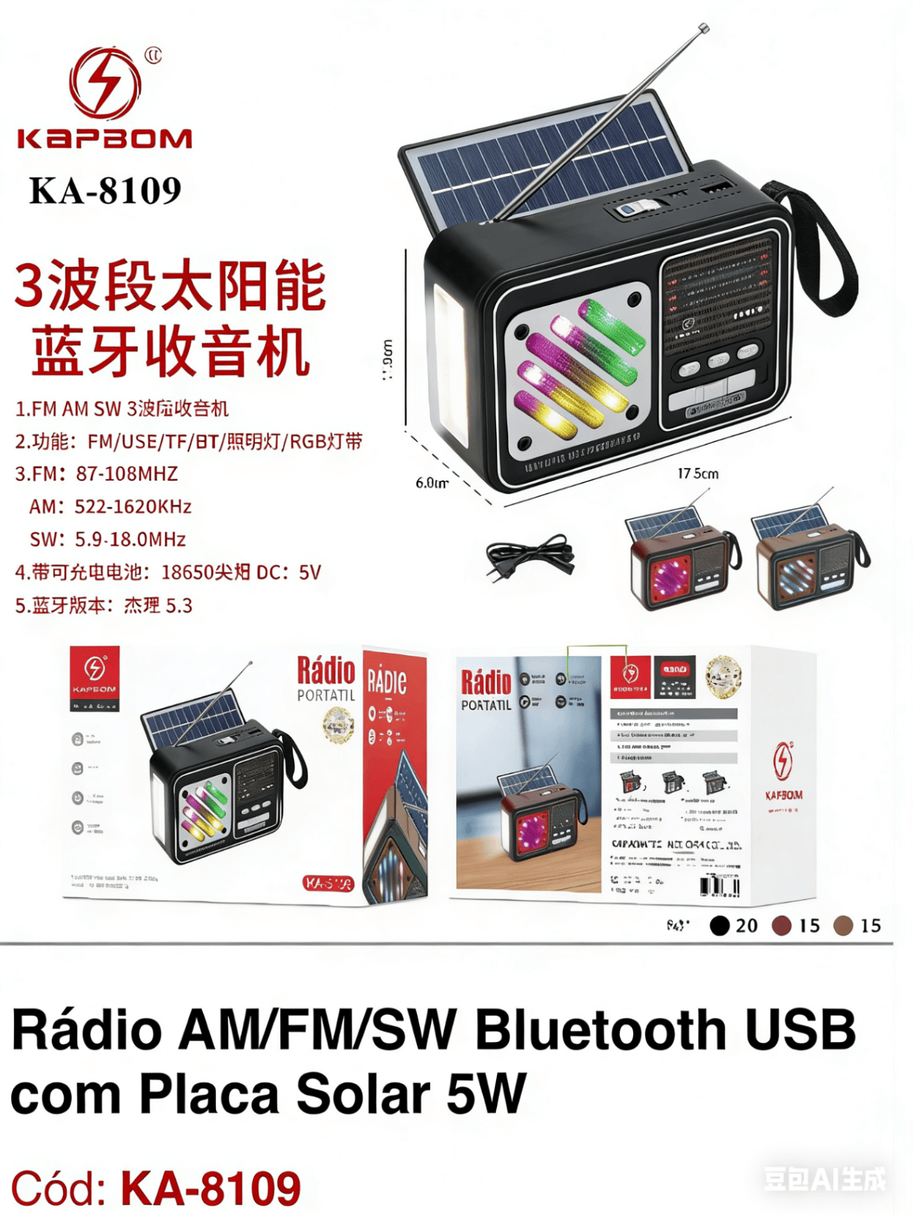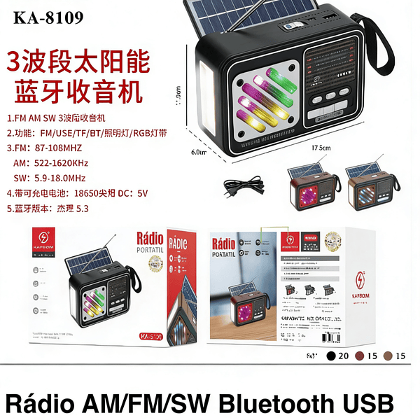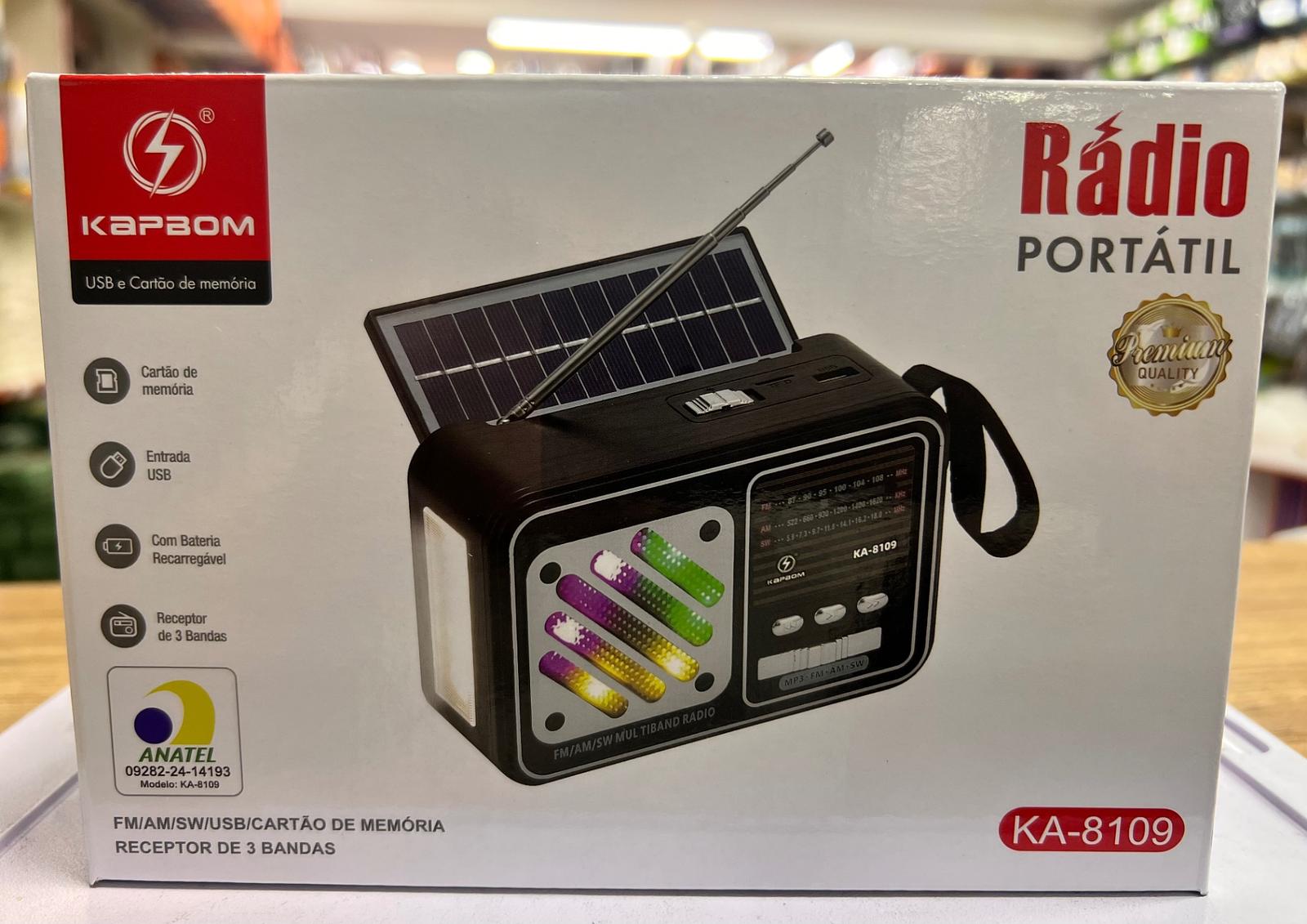 RÁDIO RETRÔ RECARREGÁVEL, ( RÁDIO FM / AM, BT, TF CARD ), COM PLACA SOLAR☀️ PARA CARREGAMENTO 5W ( KAPBOM )