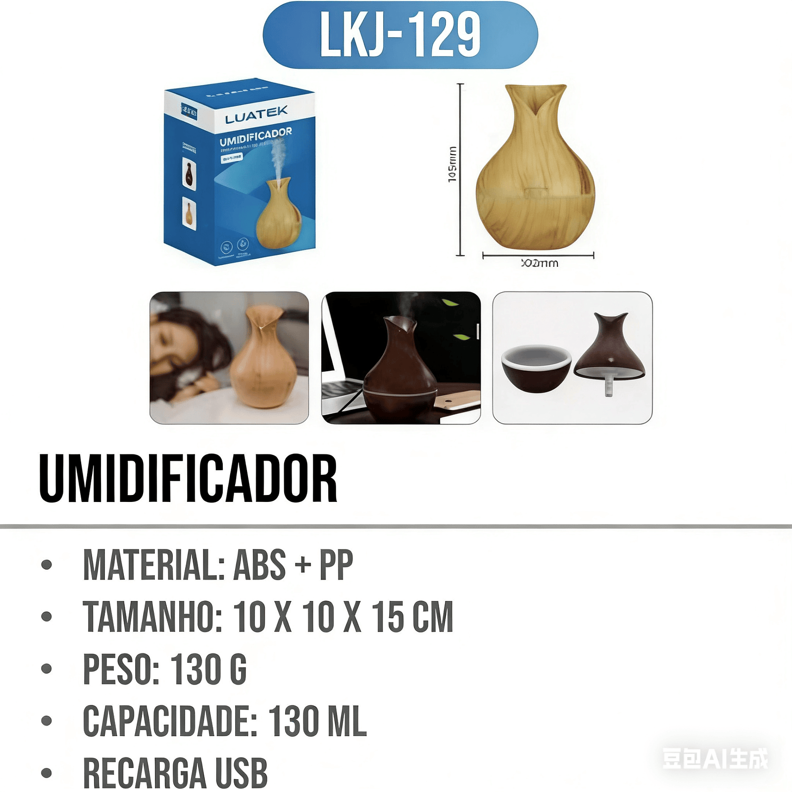 UMIDIFICADOR DE AR COM LUMINÁRIA, ( DIFUSOR E AROMATIZADOR )